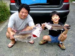 写真の釣り人は 高橋 隆昭さんと息子の敬二郎君